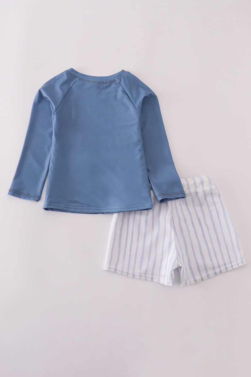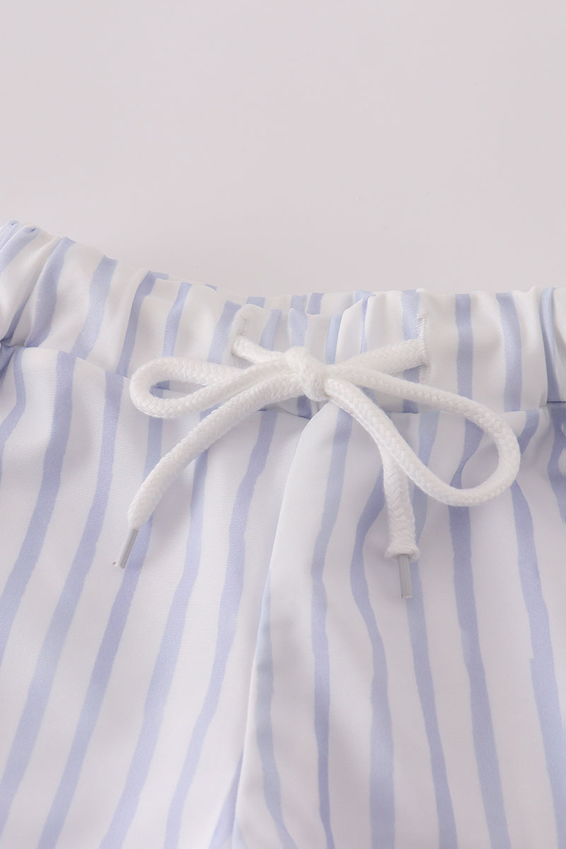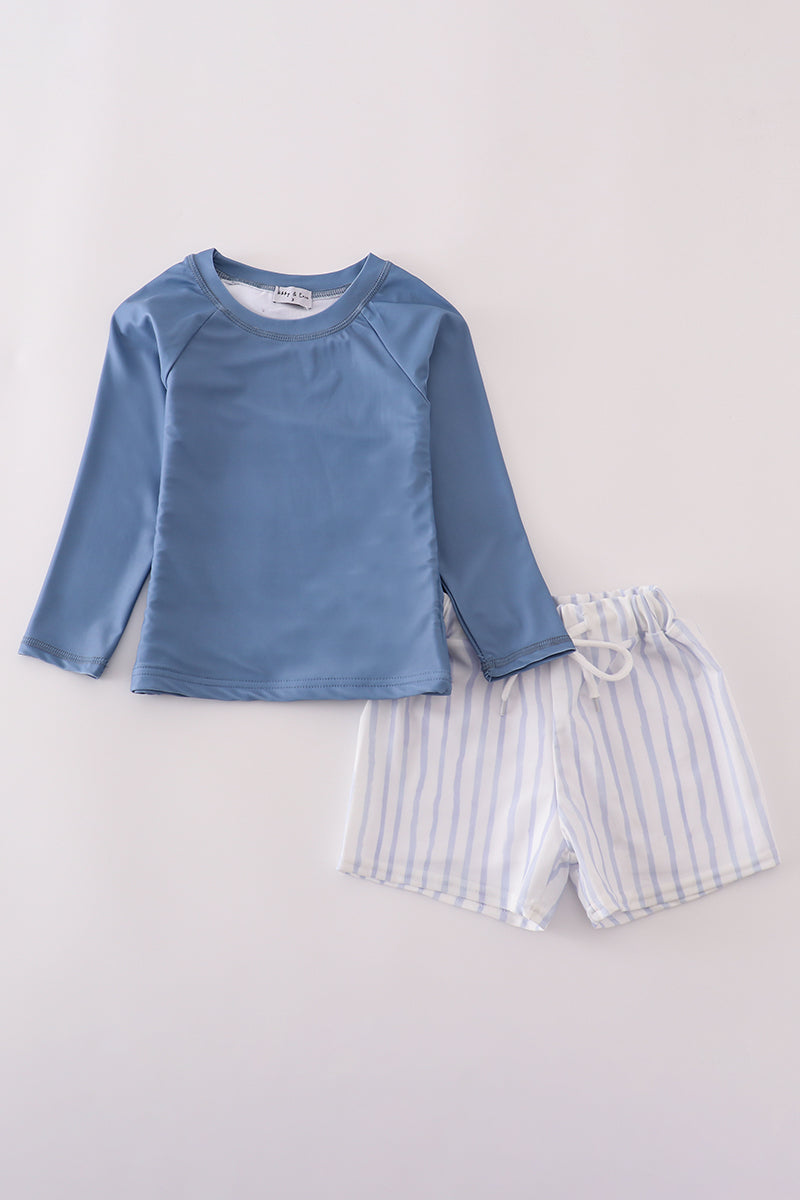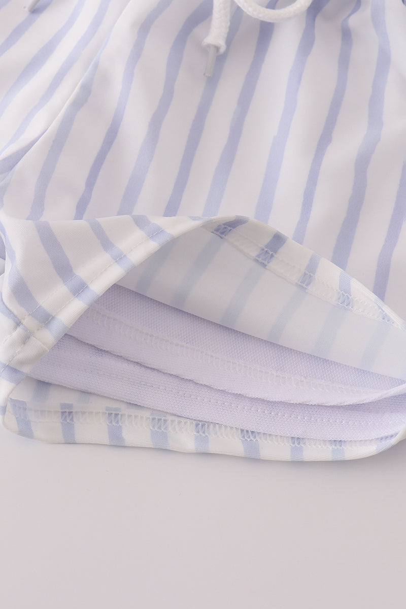 Keep your little one protected and stylish at the beach with our Blue Stripe Boy Swimsuit! Featuring UPF50+ sun protection to shield delicate skin from harmful rays while they splash and play. The playful blue stripes add a touch of nautical fun to poolside adventures. Comfortable fit means more time building sandcastles and less time fussing with swimwear!