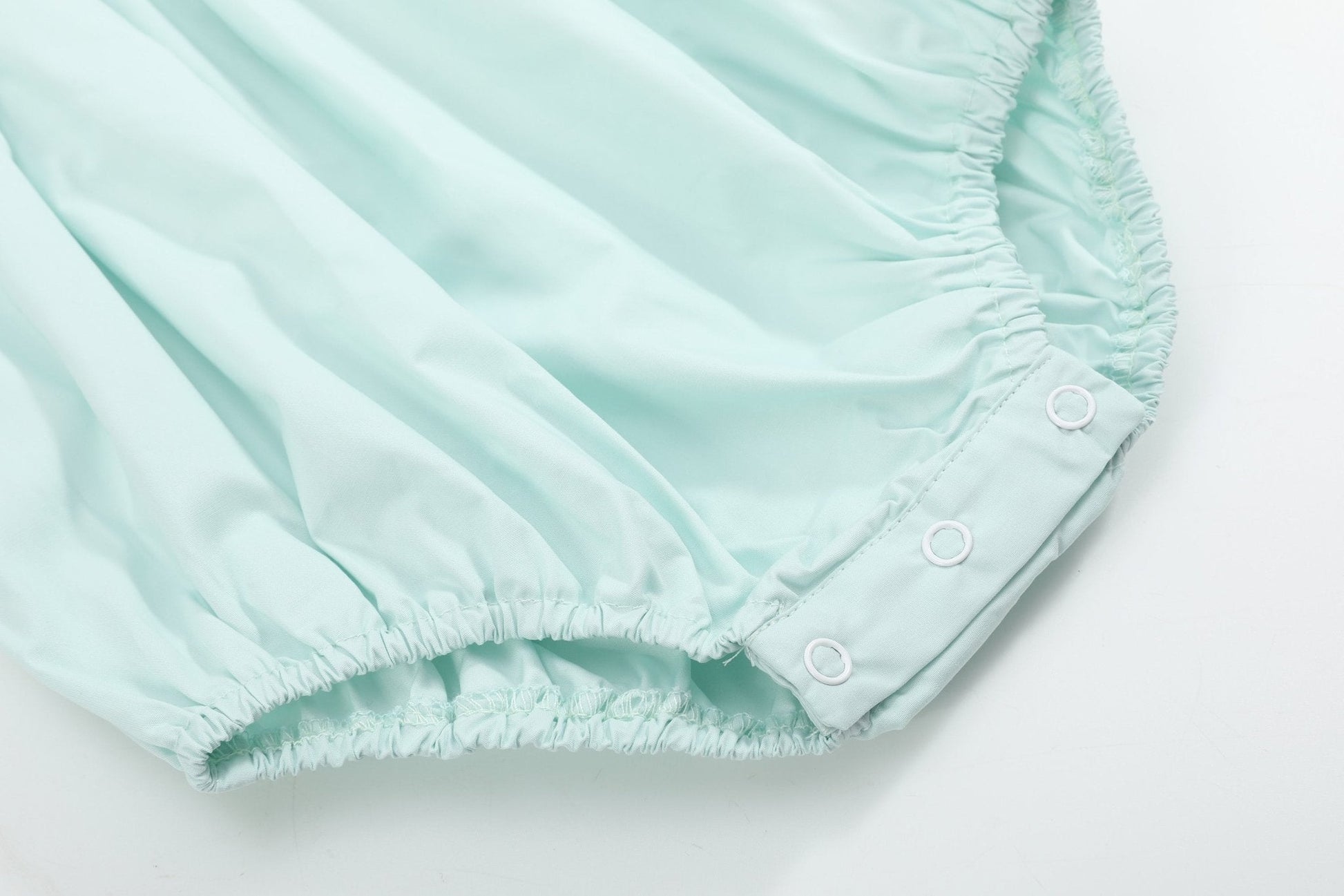 She'll look absolutely precious in this sweet blue bubble romper with charming Easter details. The hand-smocked neckline features embroidered bunnies that capture the magic of spring, while the classic bubble silhouette adds playful charm. Made from 100% soft cotton, it's breathable and comfortable enough for all-day wear whether she's at an Easter gathering, posing for family photos, or playing in the sunshine.