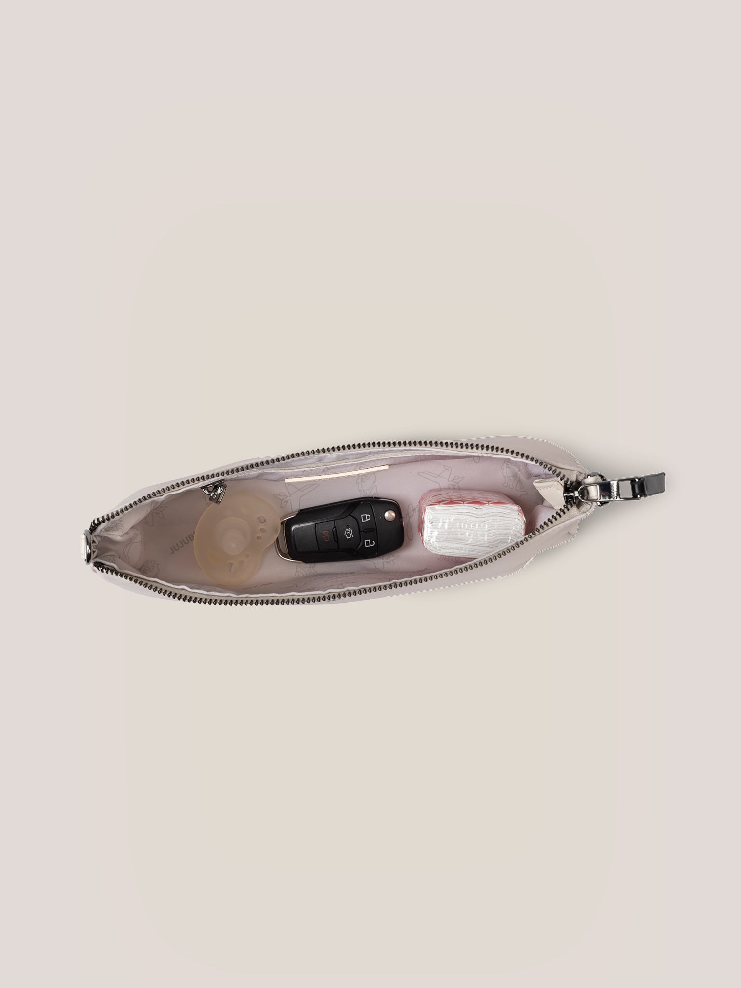collaboration! This special release reflects the professional dancer’s passion for family and attention to detail. The chic bone and black–colored collection includes the Classic Backpack, Insulated Bottle Bag, and 3-Piece Pouch Set. Inspired by this TV dance star and mommy influencer who radiates flawless style and a passion for parenthood, the lining design is a nod to Witney’s sons, Leo and Jet, and the Classic Backpack’s special key FOB features the phrase “Family Over Everything.” Each bag in this Witney Carson collection has the features and attention to detail JuJuBe fans know and love.